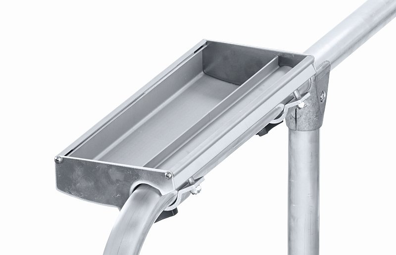 Pracovní plošina s úpravou na schody Eurostyl, počet příček 2x7, rozměry plošinky 1040 x 340 mm, maximální výška plošinky 1000 mm. Vyrobeno dle ČSN-EN 131, nosnost 150 kg.