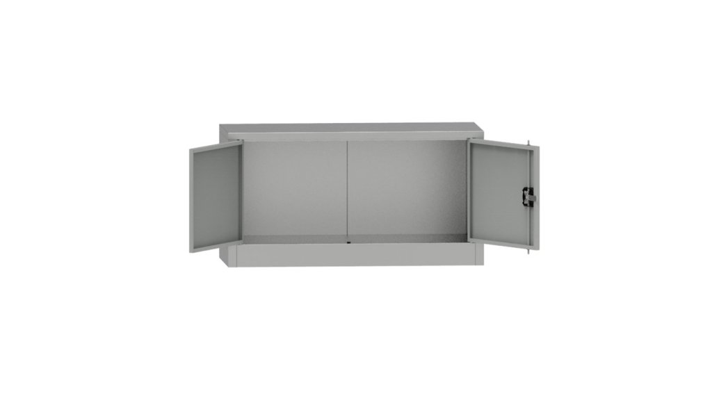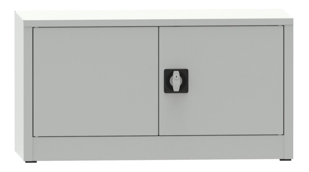 Skříň dvoudveřová. Výška 500 x šířka 950 x hloubka 400 mm, bez police. Rozvorový zámek. Barva korpusu RAL 7035 světle šedá. Dodává se demontovaná - snadná montáž.