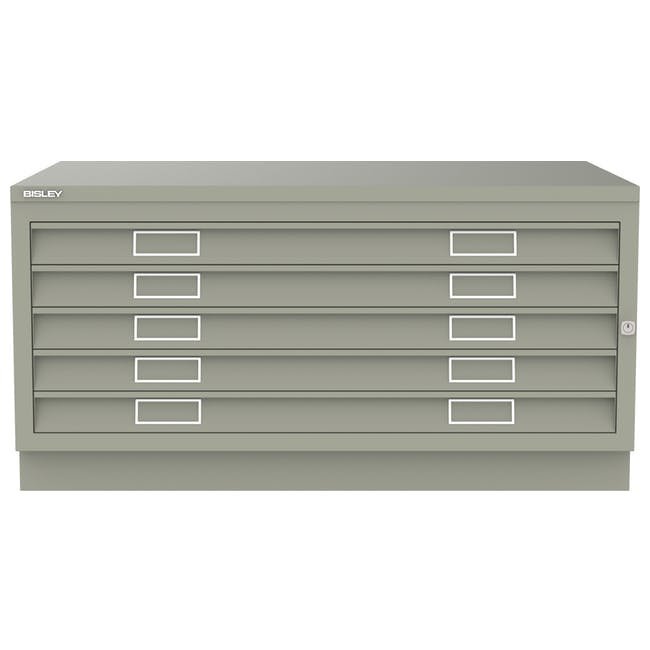 Výkresová skříň desetizásuvková A1 včetně horní desky a soklu, šířka 1010, výška 914, hloubka 691 mm. Montáž ze dvou samostatných pětizásuvkových sekcí, možno doplnit ještě tzv. mezikusem na celkový počet zásuvek 15.