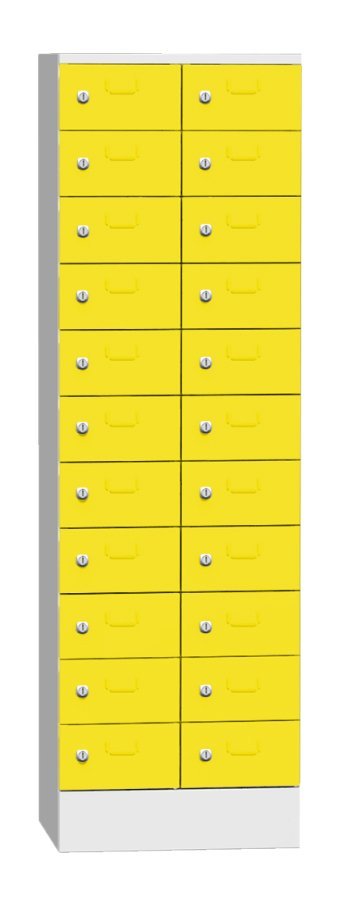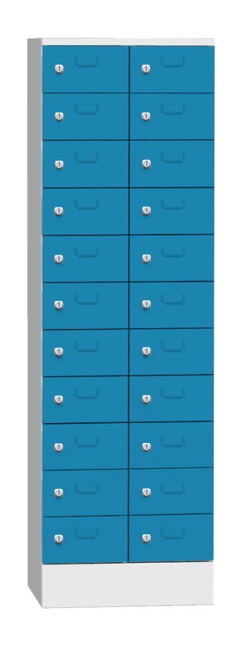 Skříň je určená na třídění pošty, dokumentů, či jiných cenností. Samostantě uzamykatelné schránky na cyl. zámek nebo uzávěr pro visací zámek. Výška 1950 x šířka 300 x hloubka 500 mm, 11 oddělení s vhozem. Barva korpusu světle šedá RAL 7035.