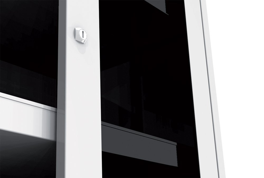 Skříň pro CNC nástroje s křídlovými dveřmi, plné křídlové dveře, nosnost 800kg. Výška 1180, šířka 505, hloubka 600 mm. Možnost náhrady plných dveří dveřmi prosklenými nebo dveřmi s drátěnou výplní. Barva korpusu RAL 7035 světle šedá.