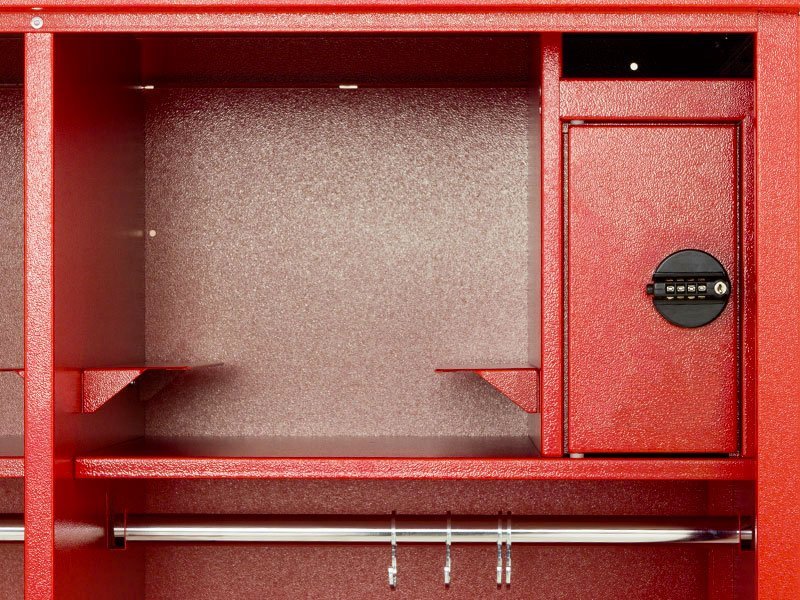 Šatní skříňky upravené speciálně pro hasiče a záchranné složky. Skříňky jsou vybaveny speciální uzamykatelnou schránkou se štěrbinou pro vhazování drobných předmětů. Skříňka je otevřená, aby výstroj byla ihned dostupná. Nožičky nejsou součástí skříně, je možné je dokoupit samostatně v červené barvě RAL 3000 nebo v černé barvě RAL 9005.