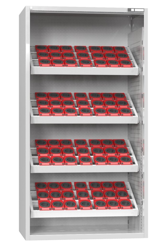 Jeden originální systém řeší skladování obráběcích i vysekávacích nástrojů. Skladování obráběcích nástrojů a skladování vysekávacích nástrojů se liší pouze druhem držáků nástrojů, ukládací a transportní prostředky jsou shodné.