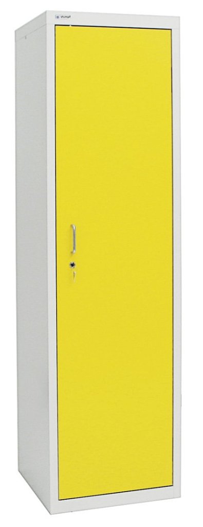 Skříň pro ukládání chemických látek s vaničkami pro zachycení unikajících kapalin. 2x pozinkovaná přestavitelná police (vanička) s nosností 100 kg. Dvoubodový cylindrický zámek. Barva korpusu světle šedá RAL 7035, barva dveří světle šedá RAL 7035, modrá RAL 5010 nebo žlutá RAL 1003. Výška 900 x šířka 500 x hloubka 500 mm.