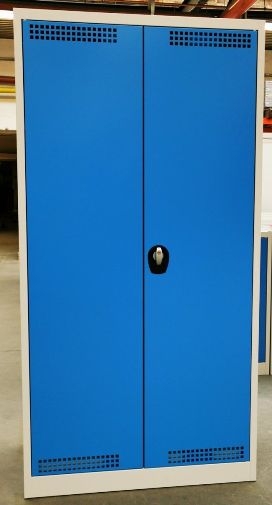 Skříň na uskladnění chemikálií s vaničkami na zachycení kapalin. Skříň je vybavena 2 přestavitelnými policemi ve tvaru vaničky s robustním perforovaným pozinkovým roštem a jednou hlubší vaničkou na dně skříně bez roštu. Výška 1180 x šířka 950 x hloubka 500 mm, nosnost police 60 kg, nosnost korpusu 300 kg. Skladem v provedení barva korpusu šedá RAL 7035, barva dveří RAL 1023.