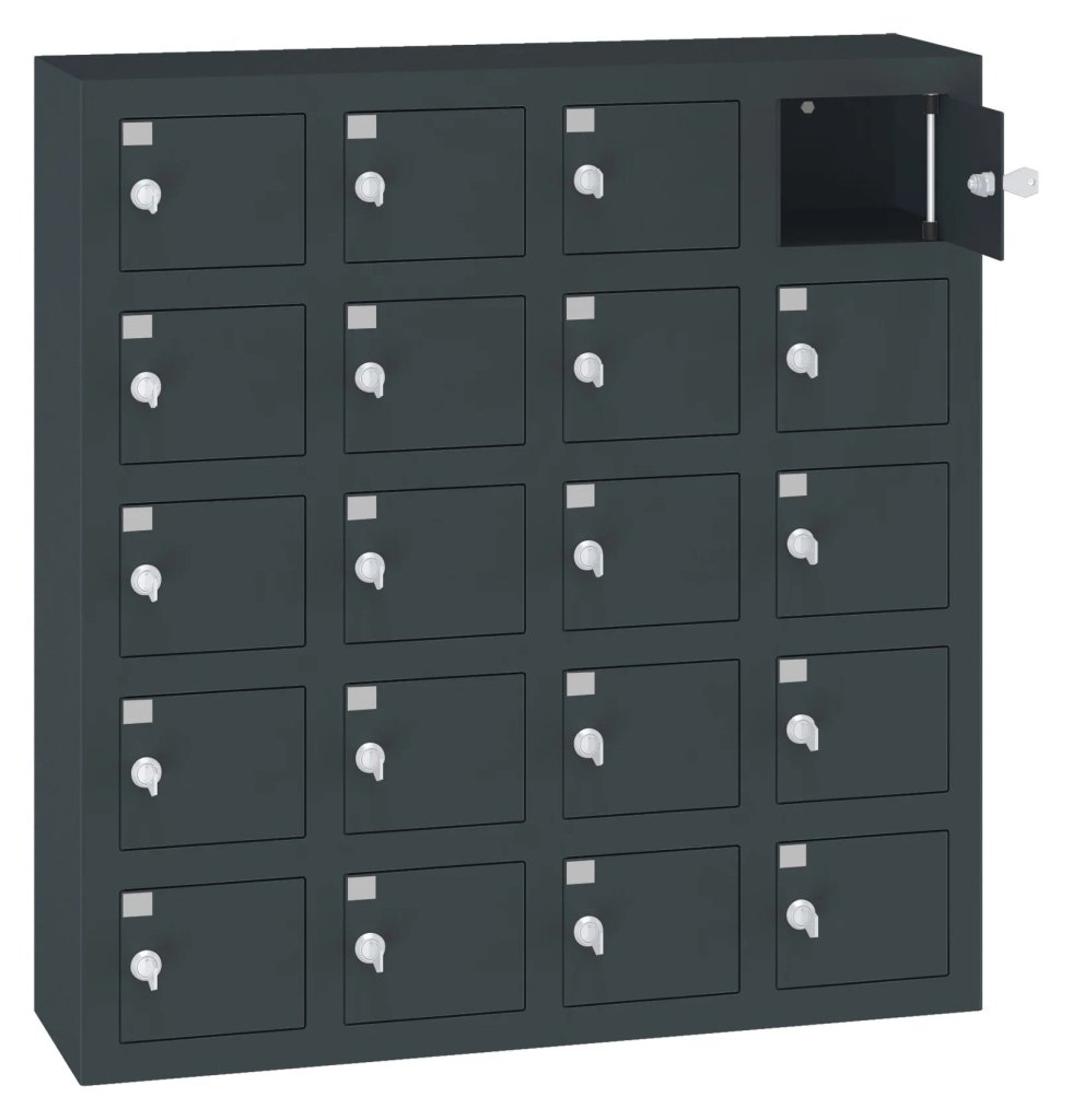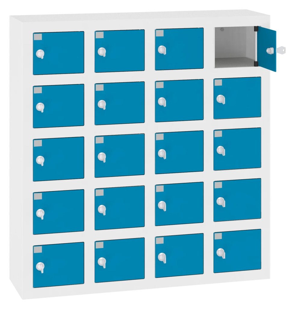Kovová skříň s boxy je určena pro bezpečné uložení mobilních telefonů. Vhodné pro místa, kde není dovoleno mít u sebe mobilní telefon, jako například školy, výrobní haly či knihovny. 16 barevných odstínů na výběr v ceně bez příplatku. Různé druhy zamykání.