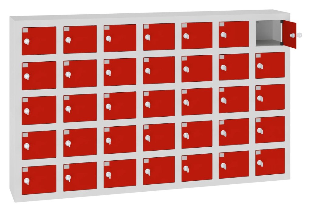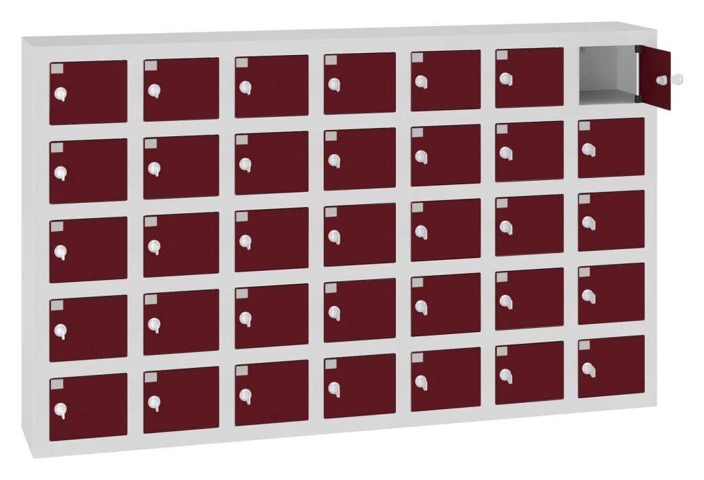 Kovová skříň s boxy je určena pro bezpečné uložení mobilních telefonů. Vhodné pro místa, kde není dovoleno mít u sebe mobilní telefon, jako například školy, výrobní haly či knihovny. 16 barevných odstínů na výběr v ceně bez příplatku. Různé druhy zamykání.
