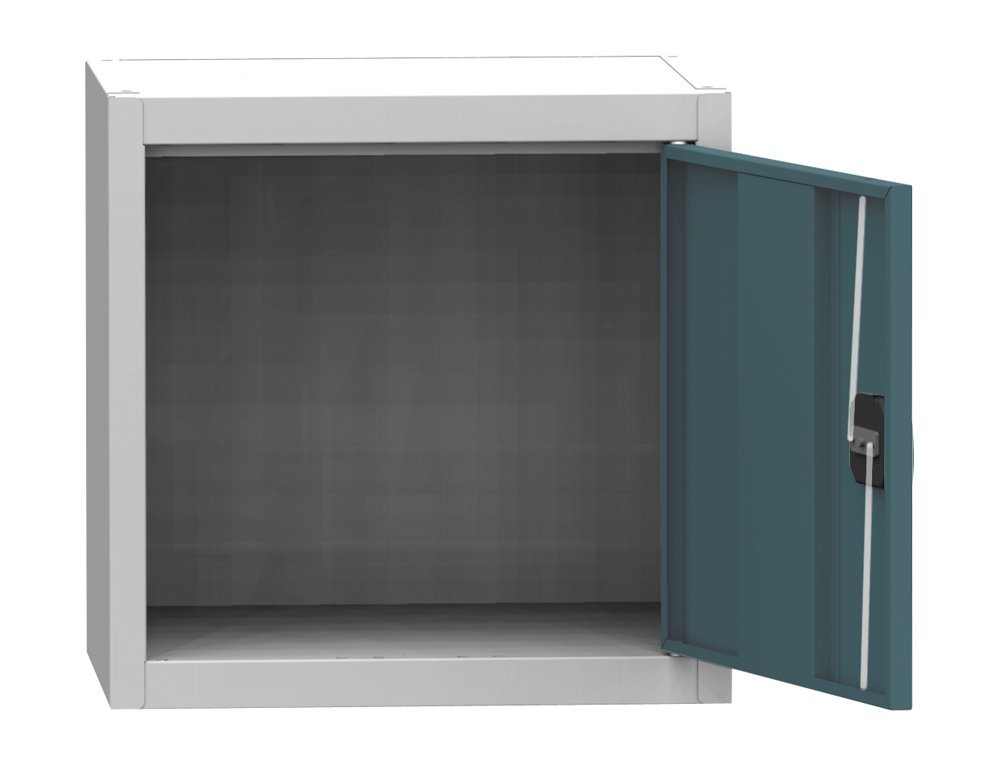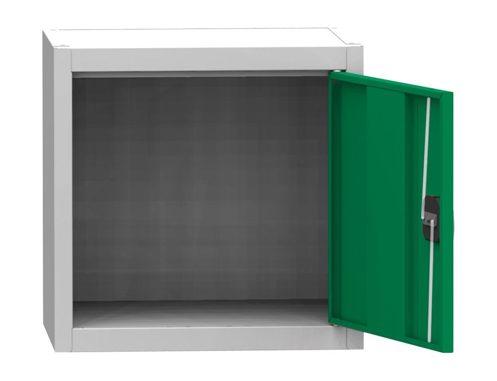Skříň s plnými dveřmi, výška 800 x šířka 505 x hloubka 400 mm. Zamykání na cylindrický zámek s rozvorovým mechanismem. 1 x stavitelná ocelová police (nosnost 60 kg). Možnost náhrady plných dveří dveřmi se skleněnou výplní, s drátěnou výplní nebo lamino dveřmi v odstínu buk, bříza nebo třešeň. Barva korpusu RAL 7035 světle šedá.