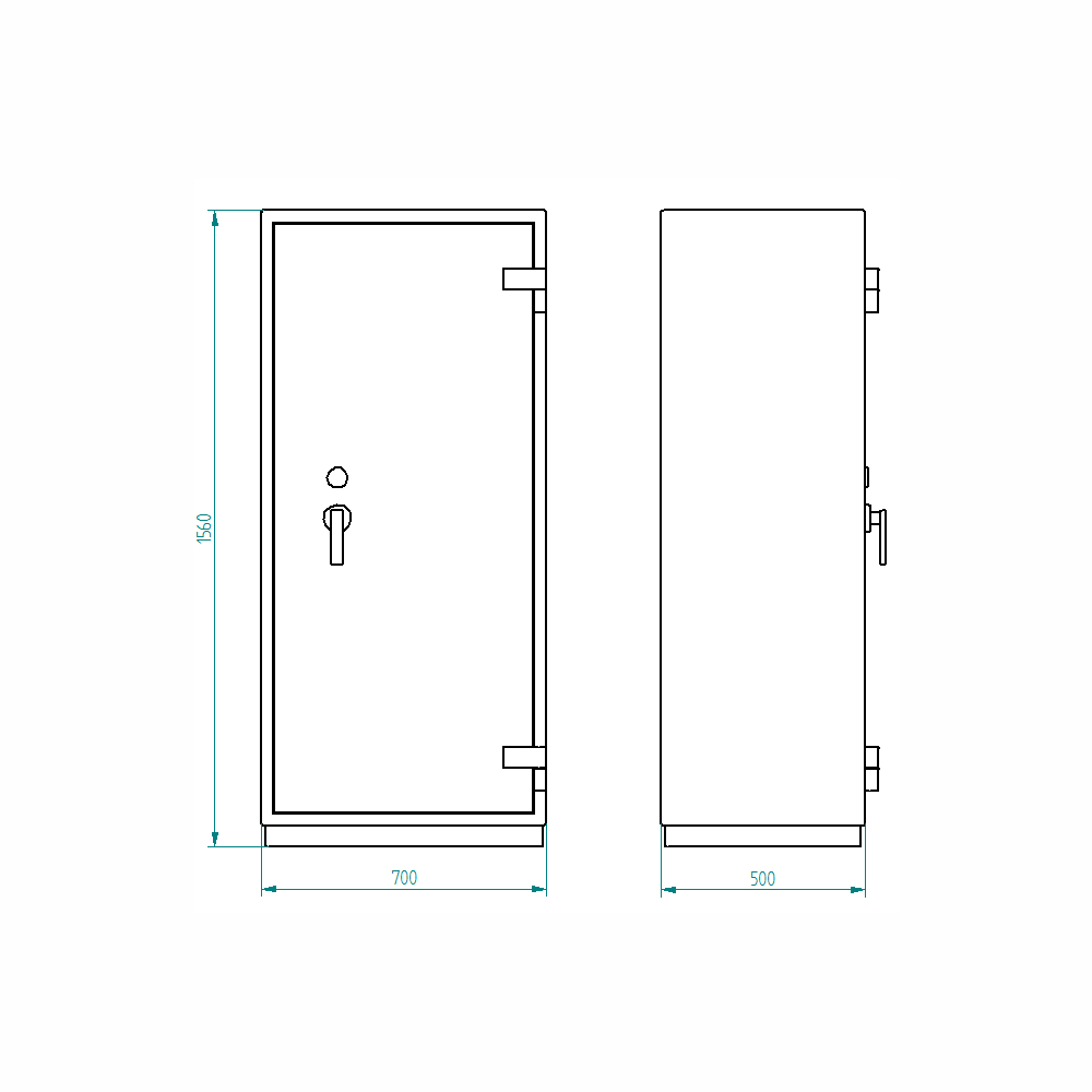 Skříň se zvýšenou odolností proti ohni jednodveřová, 3 přestavitelné police, zamykání na trezorový klíč. Výška 1560 x šířka 700 x hloubka 500 mm, hmotnost 260 kg, barva světle šedá RAL 7035. U tohoto produktu doprava i s hodnotou nákupu nad 3000,- Kč bez DPH hrazena dle místa dodání.