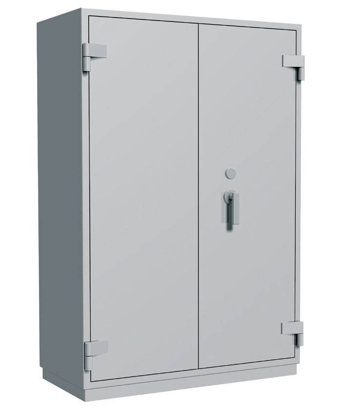 Skříň se zvýšenou odolností proti ohni dvoudveřová, 3 přestavitelné police, zamykání na trezorový klíč. Výška 1560 x šířka 950 x hloubka 550 mm, hmotnost 350 kg, barva světle šedá RAL 7035. U tohoto produktu doprava i s hodnotou nákupu nad 3000,- Kč bez DPH hrazena dle místa dodání.