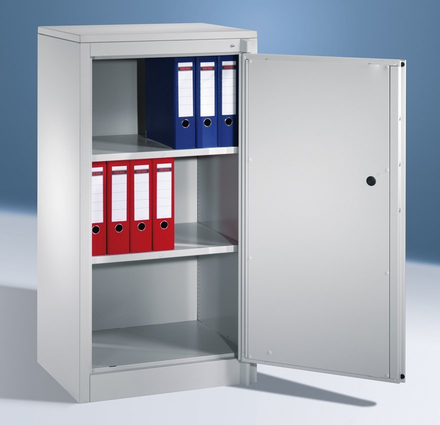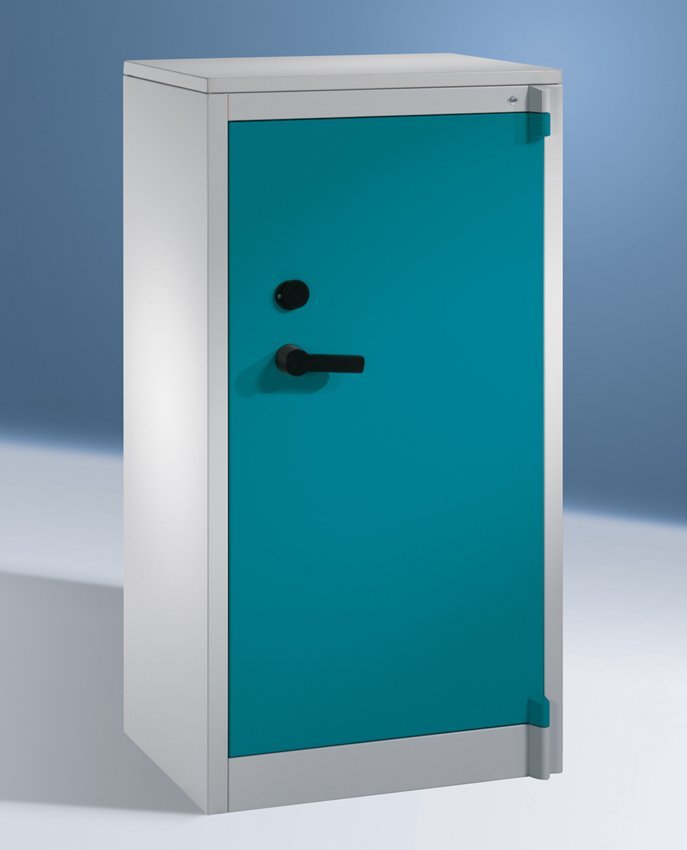 Skříň se zvýšenou ohnivzdorností jednodveřová šířka 650, výška 1226, hloubka 500 mm. Horní deska se dodává v dezénech světle šedá, celý popis a parametry