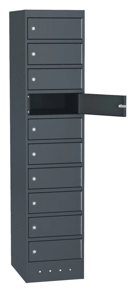 Vozík s funkcí nabíjení baterie k uložení a jednoduchému transportu notebooků. Ideální pro školy, knihovny, konferenční haly a jiné. Rozměry v mm ( V x Š x H) 1060 x 920 x 540.