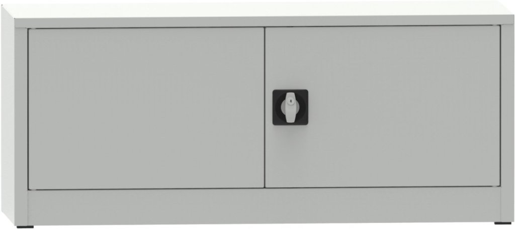 Dvoudveřová kovová svařovaná skříň, šířka 1200, výška 500, hloubka 600 mm. Barva korpusu RAL 7035 světle šedá, dveří RAL 7035 celý popis a parametry