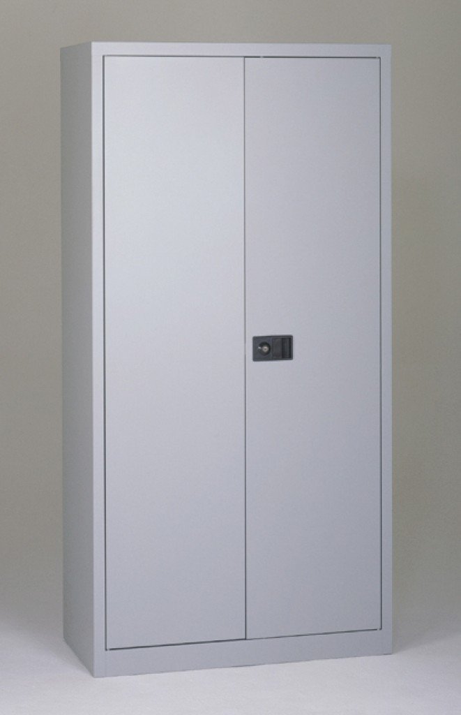 Dvoudveřová kovová skříň na šanony, 1 police, šířka 914, výška 1000, hloubka 400 mm, různé barvy. V barvě světle šedé skladem.