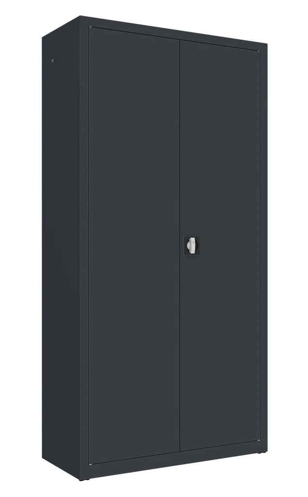 Dvoudveřová kovová skříň na šanony, 4 police, šířka 914, výška 1950, hloubka 400 mm, různé barvy, uzamykatelná. V barvě světle šedé RAL 7035 za akční cenu.