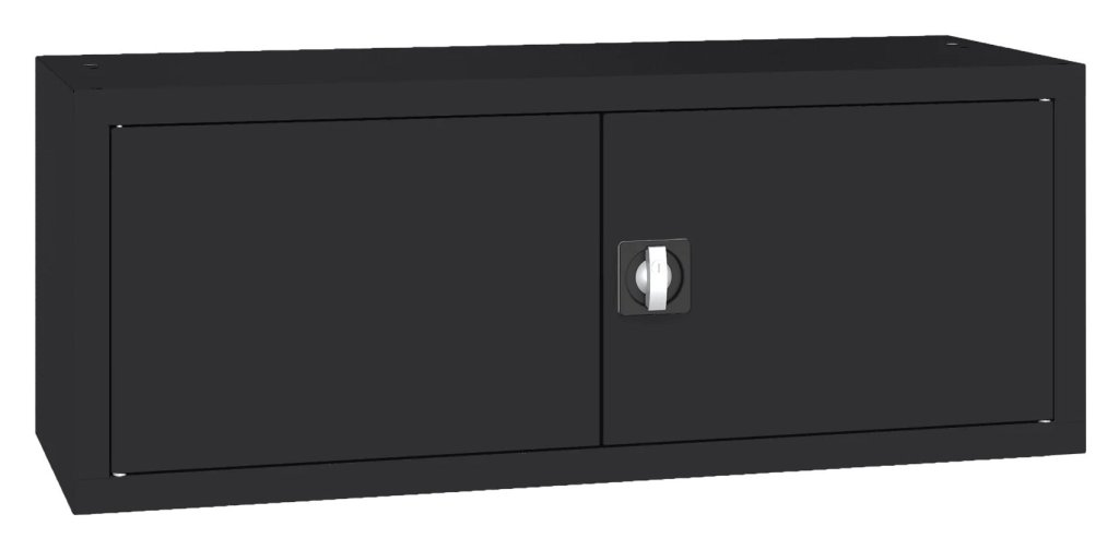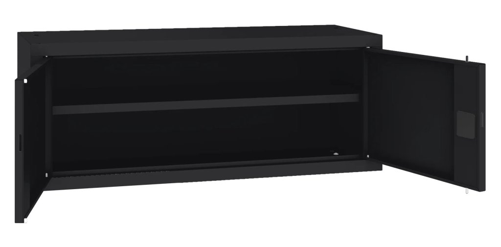 Dvoudveřová kovová skříň s jednou policí, vhodná jako nástavec. Šířka 1200 mm, výška 465, hloubka 435 mm. Dvoubodový rozvorový zámek, různé barvy.
