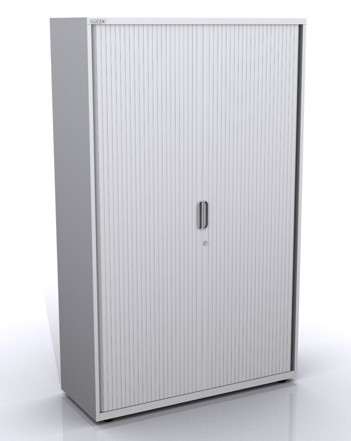 Spisová skříň SystemFile s žaluziovými dveřmi. Výška 1793 - 1817, šířka 1000, hloubka 470 mm. Tuhý svařenec z ocelového plechu tloušťky 0,9 mm, rektifikační patky pro vyrovnání nerovností podlahy ±12 mm, záruka 10 let.