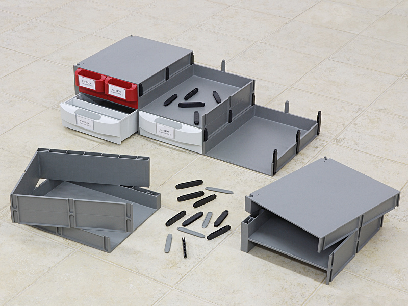 Představujeme vám nový přizpůsobivý systém pro kanceláře, sklady, archivy a další pracoviště. Jedná se o stavebnici, ze které snadno postavíte skříň na míru s různými zásuvkami a poličkami. Se systémem VariBoxů ušetříte, protože nabízí vynikající poměr ceny a úložného objemu.