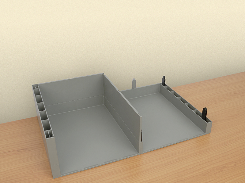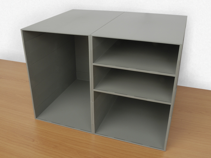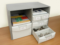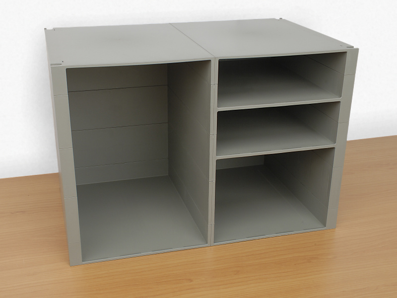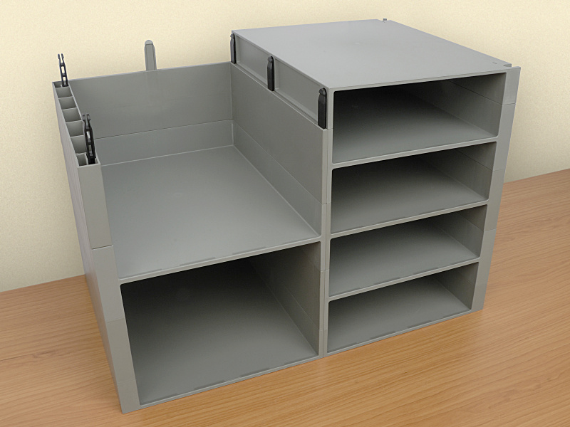 • Základní varianta má tenkou boční stěnu a je určena pro běžné použití v kanceláři a na pracovišti (kancelářský materiál a běžné pracovní pomůcky).