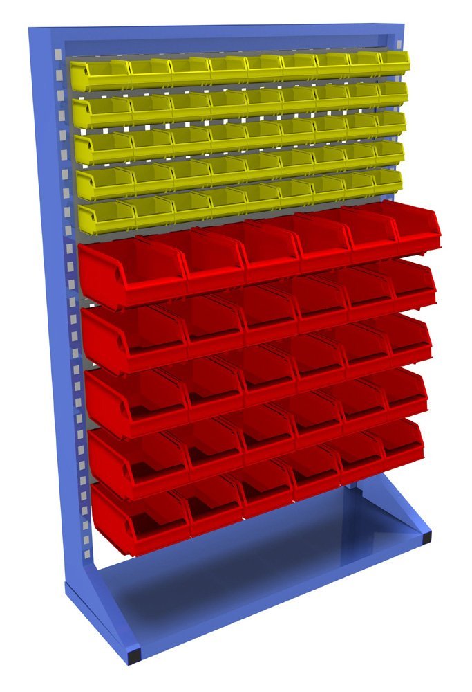 Stacionární jednostranný panel s vybavením. Konstrukce stojanu je tvořena robustním rámem s kovovými perforovanými stěnami pro zavěšení plastových boxů a držáků nářadí. Rám je lakován odolnou práškovou barvou, perforované panely jsou pozinkované nebo lakované odolnou práškovou barvou. V barvě rámu RAL 5012 modrá skladem.