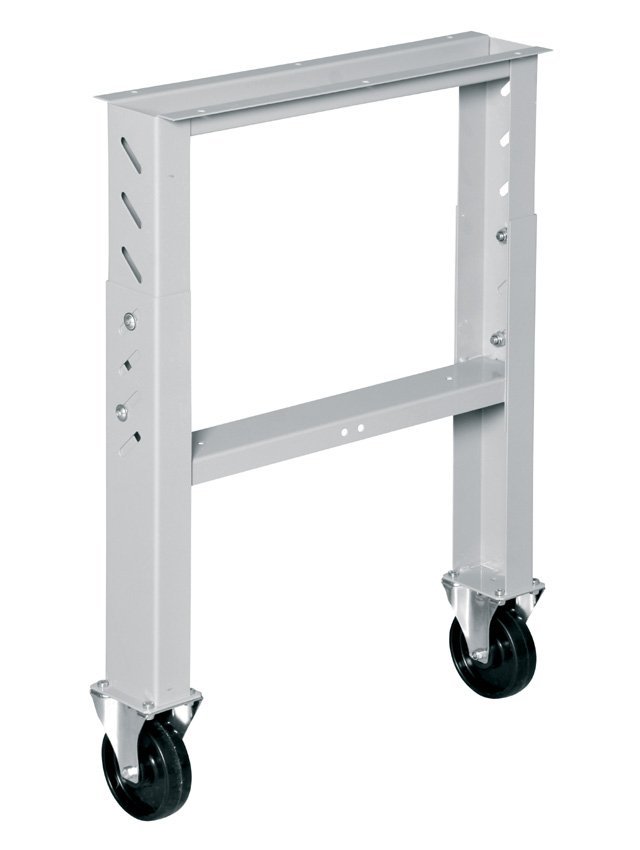 Stavitelná noha pro pracovní stoly, šířka nohy 150 mm, výška 660 - 1025 mm, hloubka 610 nebo 710 mm. 2x 125 mm polypropylenové kolo otočné s brzdou, nosnost 150 kg.