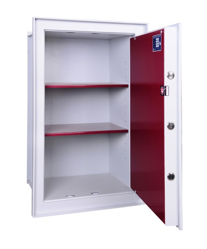 Stěnový trezor v 1. bezpečnostní třídě. Certifikát NBÚ Tajné. Výška 690 x šířka 450 x hloubka 330 mm. Objem 52 l, hmotnost 57 kg. Barva světle šedá.