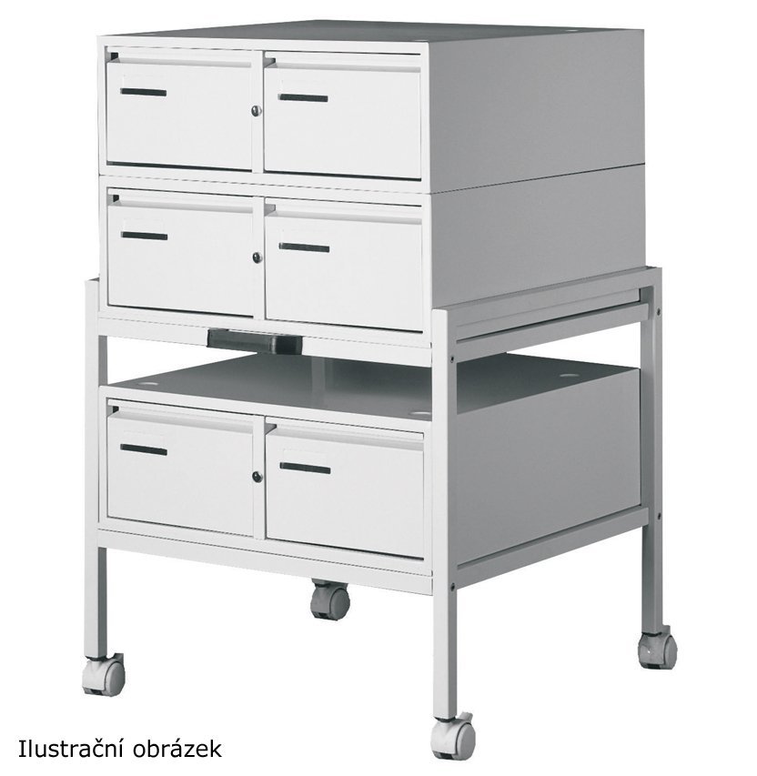 Stolek pod dvouzásuvkovou kartotéku A5 typ G45009, šířka 626, výška 600, hloubka 590 mm. Zobrazené kartotéky nejsou v ceně stolku. Barva stolku světle šedá RAL 7035, ostatní barvy s příplatkem na dotaz.