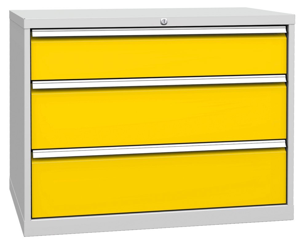 Třízásuvkový kontejner pracovního stolu, šířka 1000, výška 810, hloubka 700 mm. 1x zásuvka 180, 2x 240 mm. Barva korpusu RAL 7035 světle šedá.