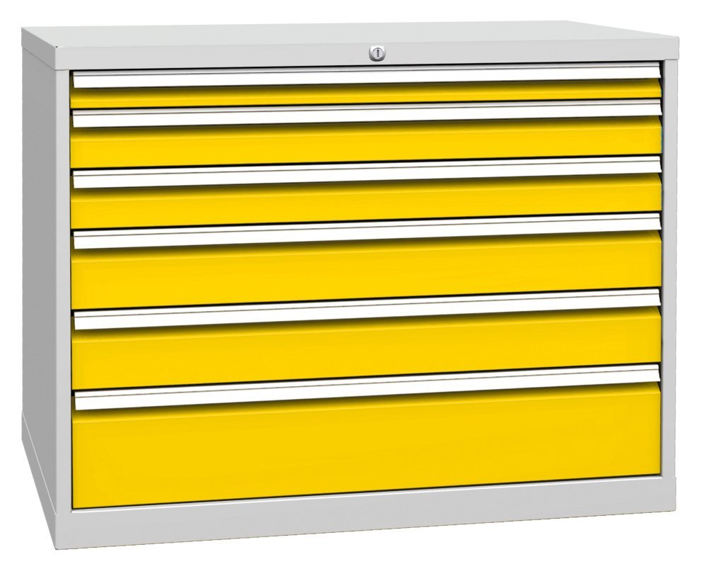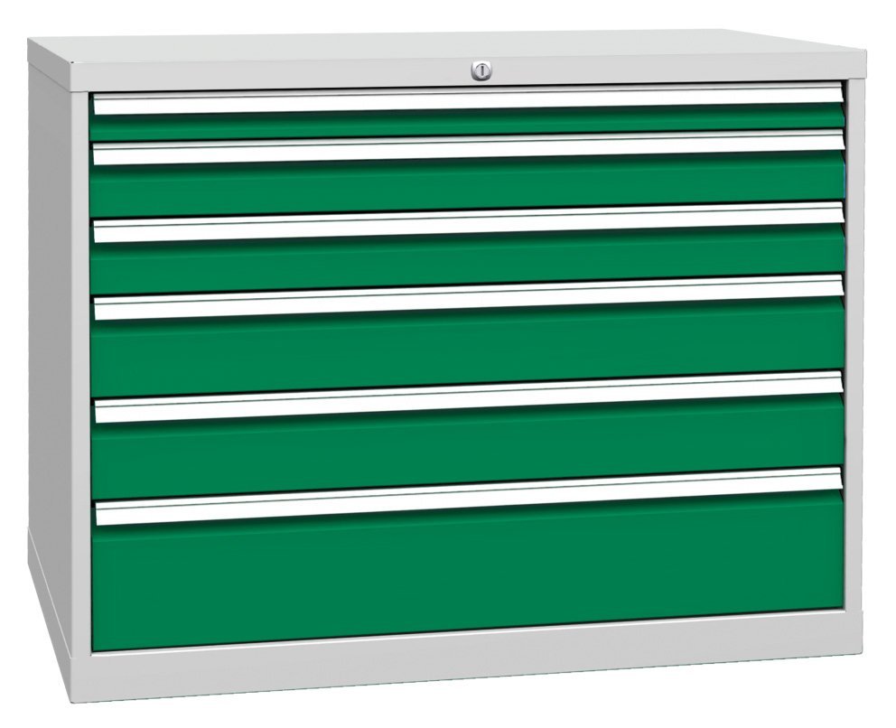 Šestizásuvkový kontejner pracovního stolu, šířka 1000, výška 810, hloubka 700 mm. 1x zásuvka 60, 2x 90, 2x 120, 1x 180 mm. Barva celý popis a parametry