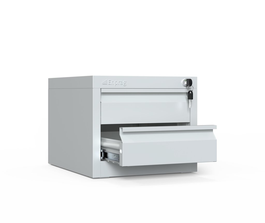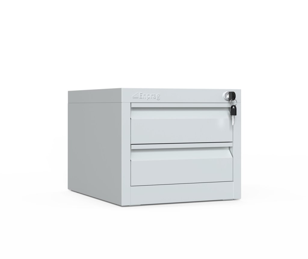 Podvěsný kontejner se dvěma zásuvkami pro pracovní stůl, výška 280, šířka 565, hloubka 580 mm. 2x zásuvka, barva korpusu RAL 7035, barva zásuvky RAL 5015.