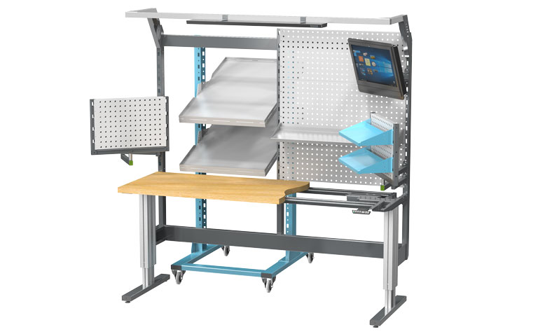 Využitím bočních ramen na monitor a ramen pro uchycení perfopanelu a dalších držáků v bocích pracoviště lze dosáhnout maximálního využití prostoru. Přehledné uložení všech potřebných nástrojů a materiálů v dosahových zónách ušetří pracovníkům čas, zefektivní jejich pracovní procesy a zvýší tak celkovou produktivitu práce. Nosnost bočních ramen je 30 nebo 10 kg.