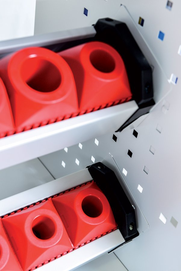 Plastové lůžko CNC nástroje VDI 30. Hlavním přínosem je přehlednost, pořádek a čistota na pracovišti. Z jednotlivých prvků si lze vytvořit libovolně zkombinovanou sestavu. Prvky se spojují pomocí rybinového drážkování. Na výběr barva červená RAL 3020 nebo modrá RAL 5015.