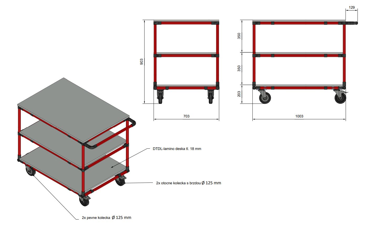 Transportní vozík z trubkového stavebnicového systému je šikovným pomocníkem vhodným do průmyslových prostor, skladů a výrobních celý popis a parametry