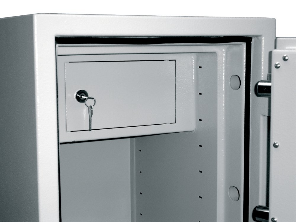 Trezorová skříň se zvýšenou odolností proti ohni, vnitřní schránka, zamykání na trezorový klíč. Bezpečnostní třída 1, certifikát NBÚ Tajné. Výška 670 x šířka 420 x hloubka 500 mm, hmotnost 105 kg, barva světle šedá RAL 7035. U tohoto produktu doprava i s hodnotou nákupu nad 3000,- Kč bez DPH hrazena dle místa dodání.