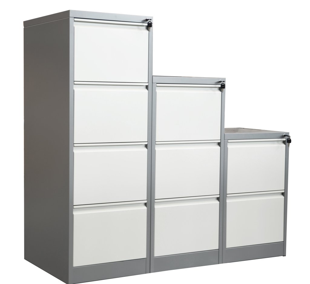 Čtyřzásuvková demontovaná kartotéka z ocelového plechu tloušťky 0,6 mm. Výška 1315 x šířka 400 x hloubka 600 mm, centrální zámek, plný výsuv. Pro dokumenty nebo závěsné desky formátu A4. Barva šedá.