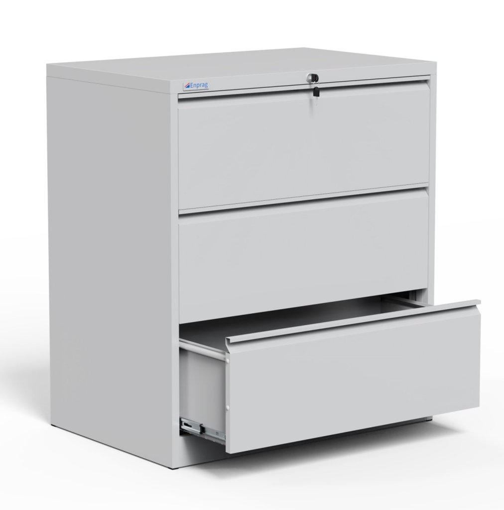 Třízásuvková demontovaná kartotéka z ocelového plechu tloušťky 0,6 mm. Výška 1015 x šířka 400 x hloubka 600 mm, centrální zámek, plný výsuv. Pro dokumenty nebo závěsné desky formátu A4. Barva šedá nebo korpus tmavě šedý a zásuvky bílé.