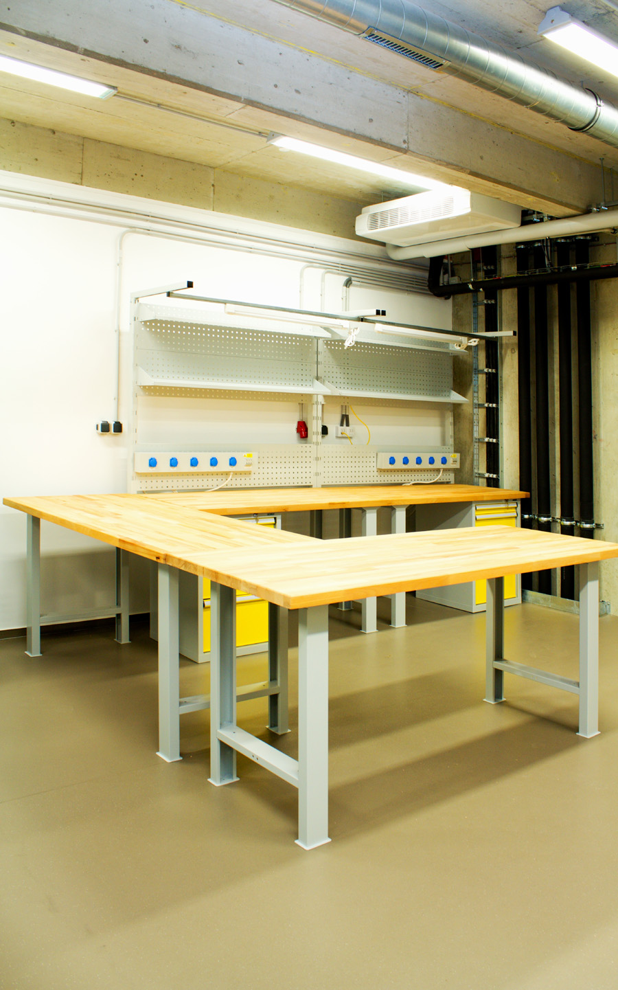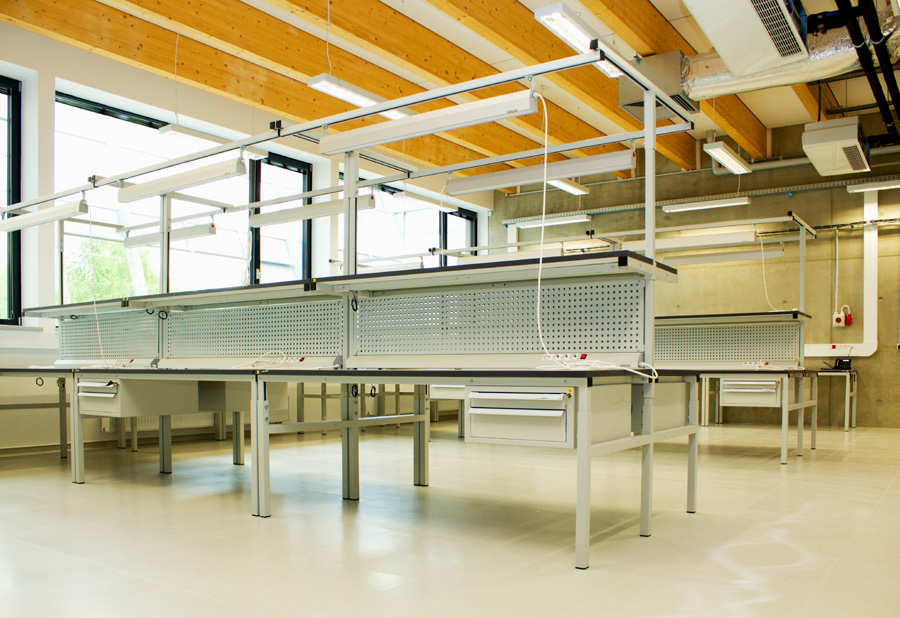UCEEB (ČVUT) Buštěhrad Laboratorní a montážní stoly, regály, kontejnery, hodnota zakázky cca 1.450.000,- Kč bez DPH, realizace květen 2014