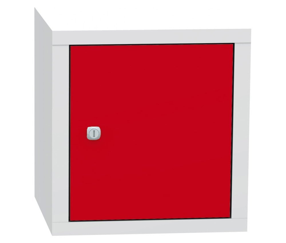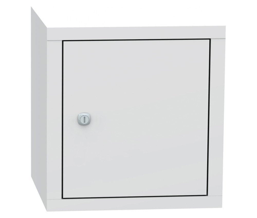 Jednodveřová uzavíratelná kostka, výška 370, šířka 400, hloubka 400 mm. Barva korpusu RAL 7035 světle šedá.