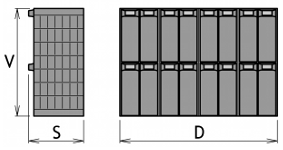 • jednotlivé sestavy lze vzájemně propojit spojkami a to vedle sebe (podle potřeby) a na sebe (max. 4x)