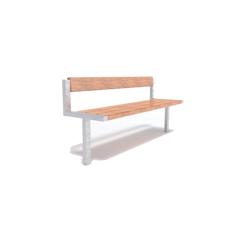 Parková lavička s opěradlem. Ocelová kostra lavičky je práškově lakována nebo žárově zinkována. Konstrukce 60 x 8 mm. Dřevěné latě smrkové dřevo, úprava 3x lazurou. Ukotvení zabetonováním nebo šrouby. Výška sezení 450 mm, šířka lavičky 1500 mm, hloubka 430 mm. Rozměr latí 1500 x 1200 x 30 mm.