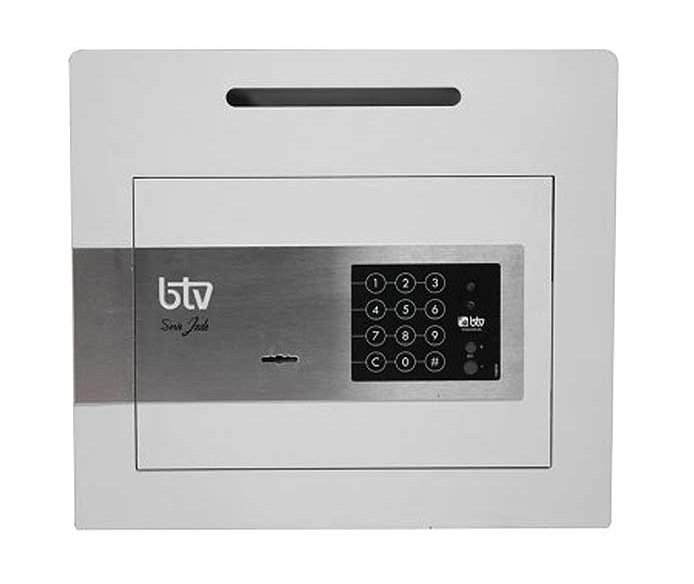 Speciální elektronický sejf s vhozem ve dveřích sejfu. Velmi vhodný pro firmu, kde zaměstnanci nemají přístup do sejfu a hotovost vhazují štěrbinou. Výška 250 x šířka 350 x hloubka 250 mm, napájení 4x 1,5V tužkovými bateriemi, nouzový klíč.