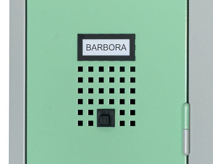 Zamykání - standardně je šatní buňka uzamykána jednobodovou závorou s cylindrickým zámkem a dvěma klíči. Možná je též náhrada zámku otočným uzávěrem pro visací zámek bez příplatku. |