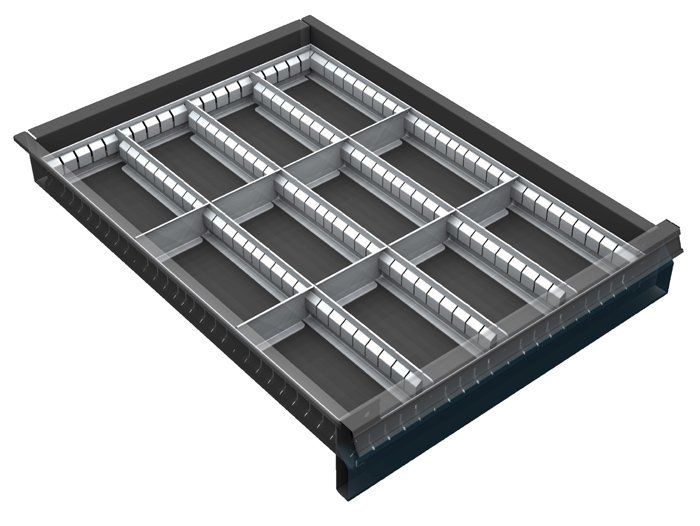 Vnitřní dělení zásuvek DPK VND 11. Instalace je možná do zásuvek, kde výška čela zásuvky je 60 - 120 mm.