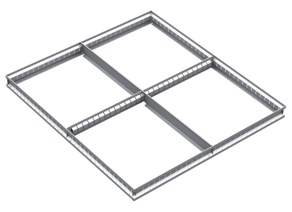 Vnitřní dělení zásuvek VND EPO 11A. Instalace je možná do zásuvek, kde výška čela zásuvky je 60 a 90 mm. Rozměr 47 x 538 x 457 mm.