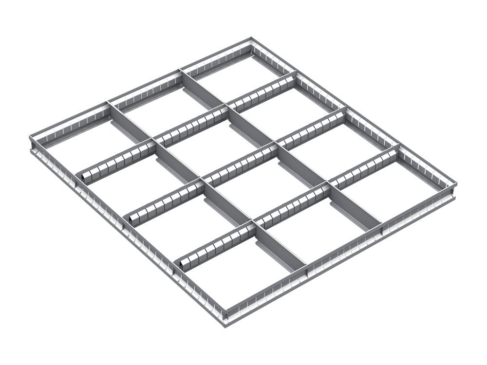 Vnitřní dělení zásuvek VND EPV 11C. Instalace je možná do zásuvek, kde výška čela zásuvky je 60 a 90 mm. Rozměr 47 x 538 x 357 mm.