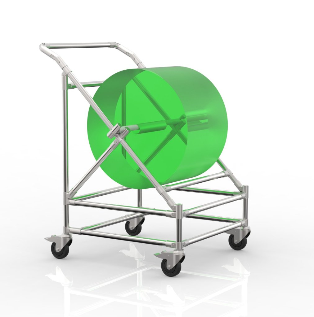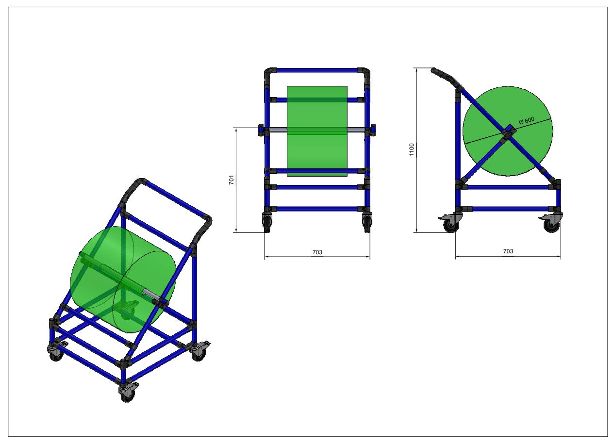 Vozík na cívky je typ ručního vozíku, který je určen pro skladování a přepravu velkých cívek s dráty a kabely. Kolečka jsou opatřeny brzdami, které zabraňují samovolnému pohybu při nepoužívání vozíku. Barva konstrukce volitelná dle dostupných trubek na webu.