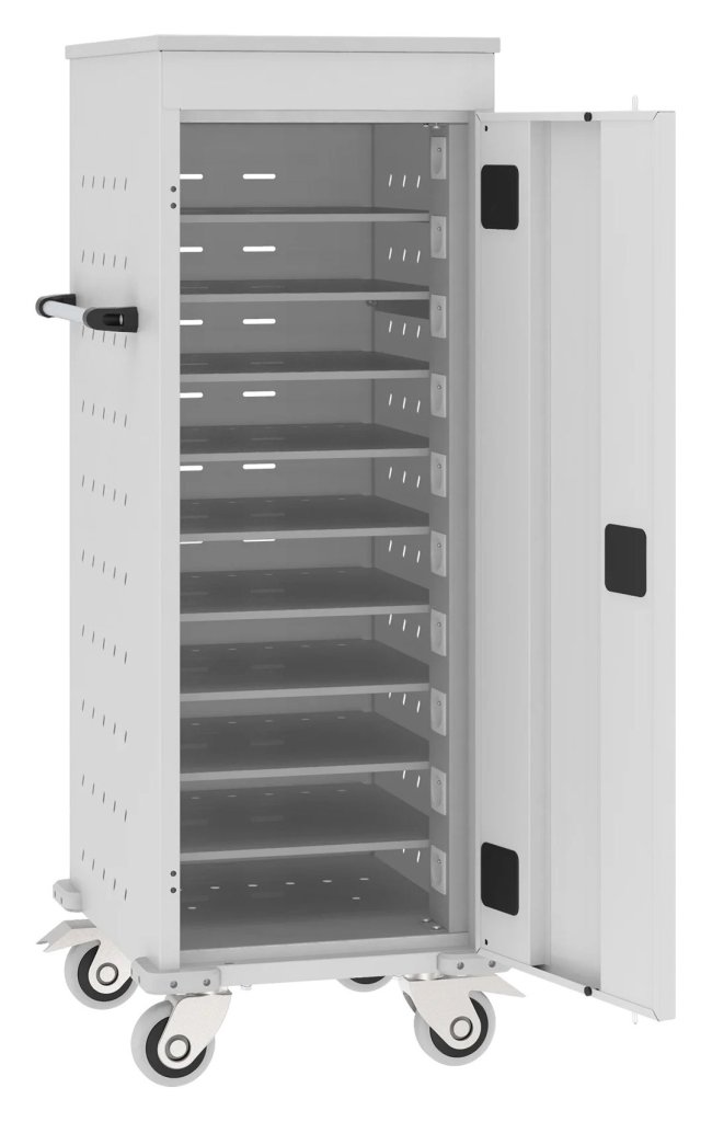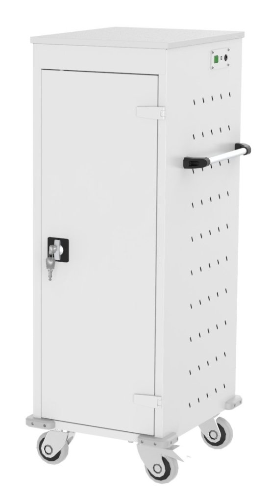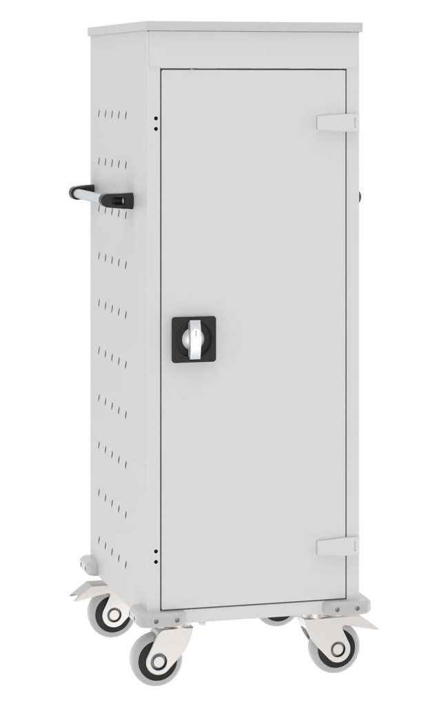 Vozík s funkcí nabíjení baterie k uložení a jednoduchému transportu notebooků. Ideální pro školy, knihovny, konferenční haly a jiné. Rozměry v mm ( V x Š x H) 1060 x 920 x 540.