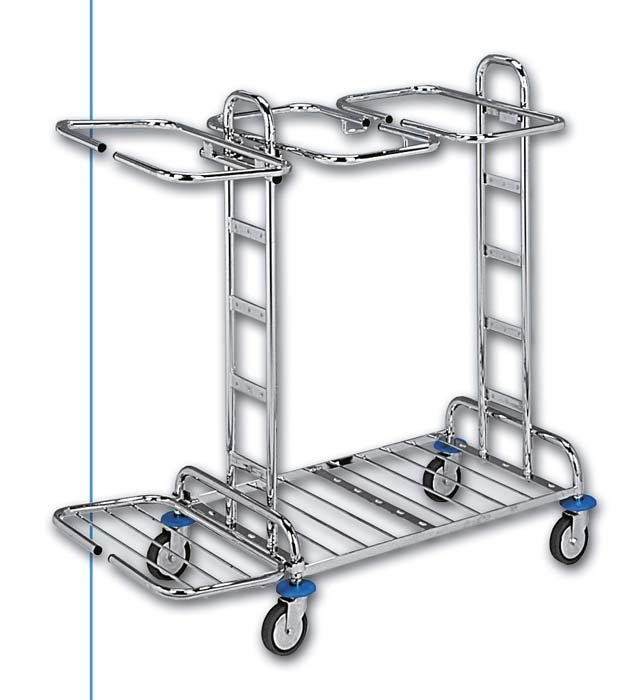 Vozík na třídění odpadu a prádla. Stabilní konstrukce z ocelových pochromovaných trubek. Nehlučná kolečka s ochranou proti nárazům.