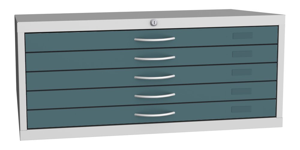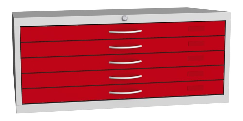 Výkresová skříň pětizásuvková formát A1, šířka 986, výška 435, hloubka 748 mm. Výsuv zásuvek 100%, centrální zámek, úchytky chrom celý popis a parametry