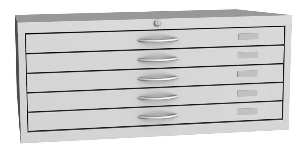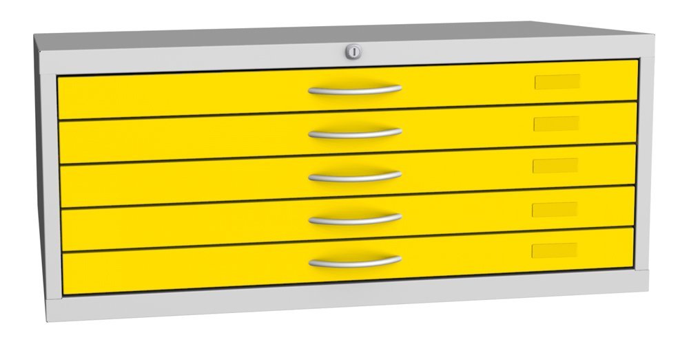 Výkresová skříň pětizásuvková formát A1, šířka 986, výška 435, hloubka 748 mm. Výsuv zásuvek 100%, centrální zámek, úchytky chrom lesklý. Skříň je možné vybavit kovovým podstavcem. Barva korpusu RAL 7035 světle šedá. Skladem v provedení barva RAL 7035 světle šedá.